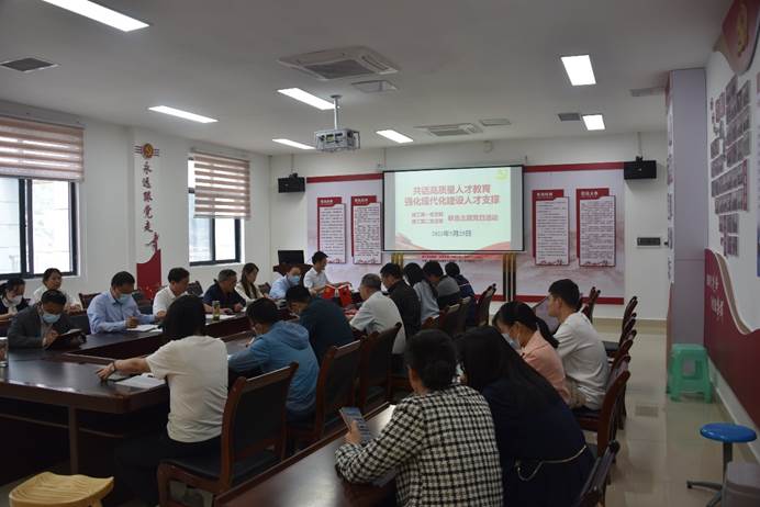 5月25日下午2∶30,教工第一、二党支部在公司党员之家开展“共话高质量人才教育 强化现代化建设人才支撑”联合主题党日活动。公司党委书记张在金,党委副书记、经理李岩,正处级组织员罗开源,党委委员、副经理周远忠,党委副书记王红卫,党委委员、教工第一党支部书记刘俊和太阳成集团tyc234cc主页“双带头人”教师党支部书记工作室、教工第二党支部书记张孝刚,以及支部党员同志参会。刘俊同志主持会议。