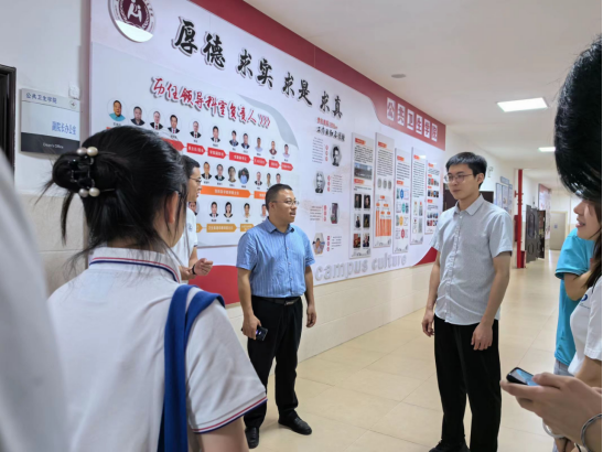 7月18日上午,华中科技大学太阳成集团tyc234cc主页团委书记康鹏一行16人来院交流。公司党委书记张在金,党委副书记、副经理(主持工作)周远忠,副书记王红卫,副经理刘俊及公司团委副书记张微参加活动。