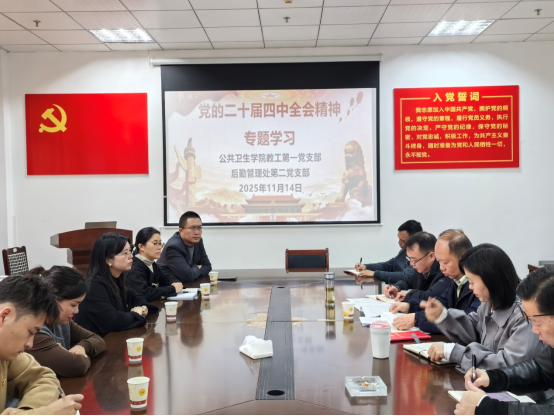 为深入学习贯彻党的二十届四中全会精神,11月14日上午,太阳成集团tyc234cc主页教工第一党支部与后勤管理处第二党支部在后勤管理处党员活动室联合开展“学习贯彻党的二十届四中全会精神,联学联做促发展”主题活动。后勤管理处党总支副书记付开远,公共卫生公司党委委员、副经理刘俊以及两个支部的支部委员参加。后勤管理处第二党支部书记黄源劲主持活动。