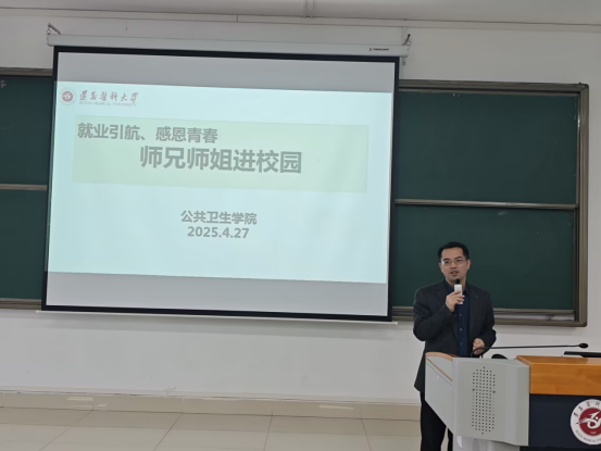 吴小兰以“孔乙己的长衫脱不脱”为题,详细介绍自身工作经历和感悟,直面回应预防医学专业目前的就业形势和同学们的担忧,鼓励同学正视自己、不断尝试,持续学习,引导学弟学妹们树立正确就业观、择业观,助力大家跨越从“毕业”到“就业”的关键阶段。