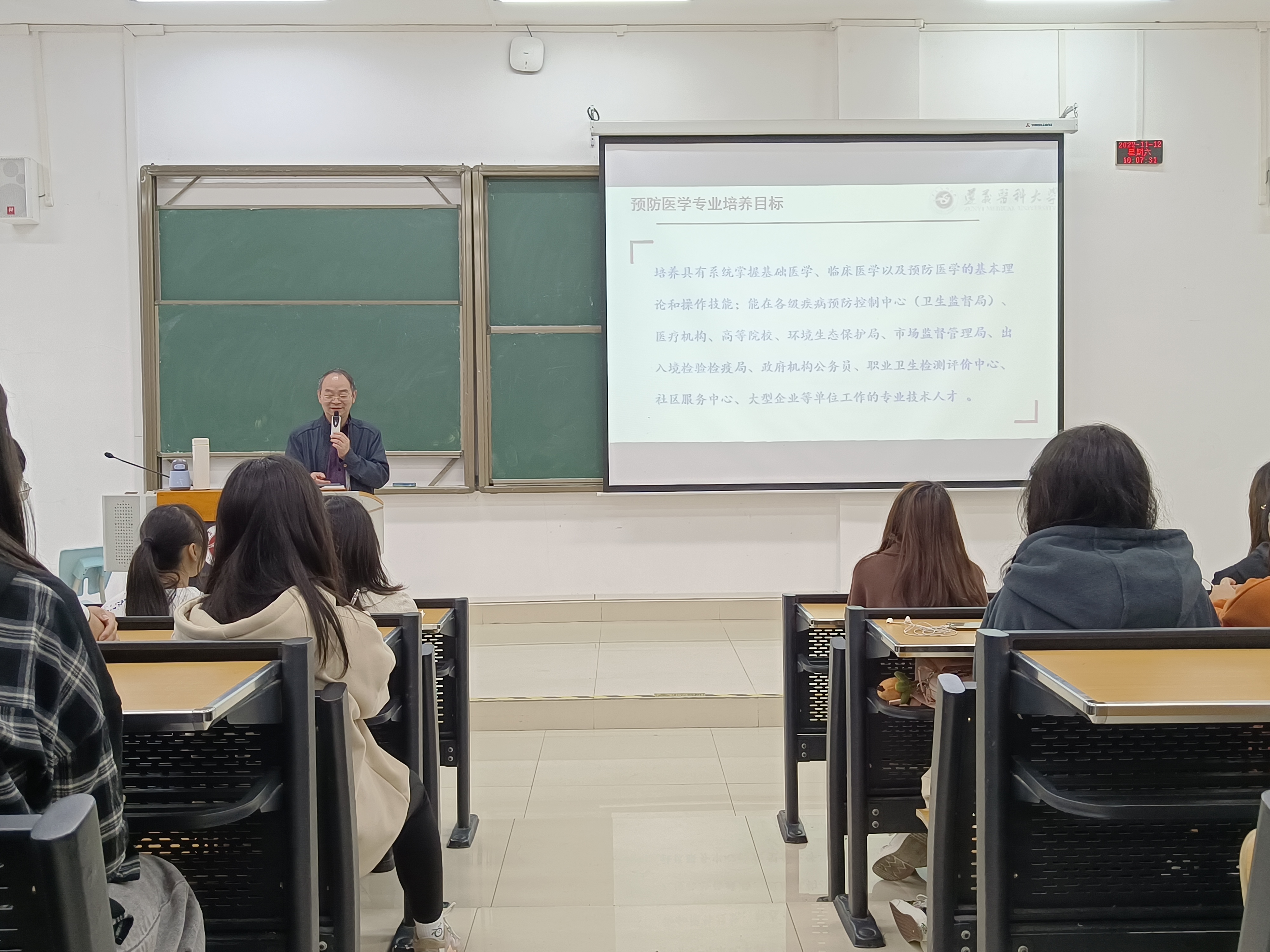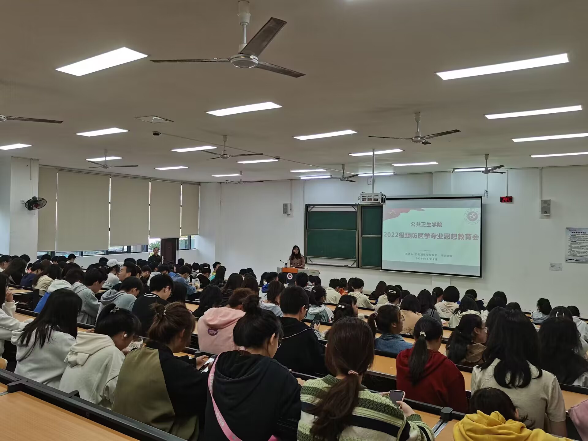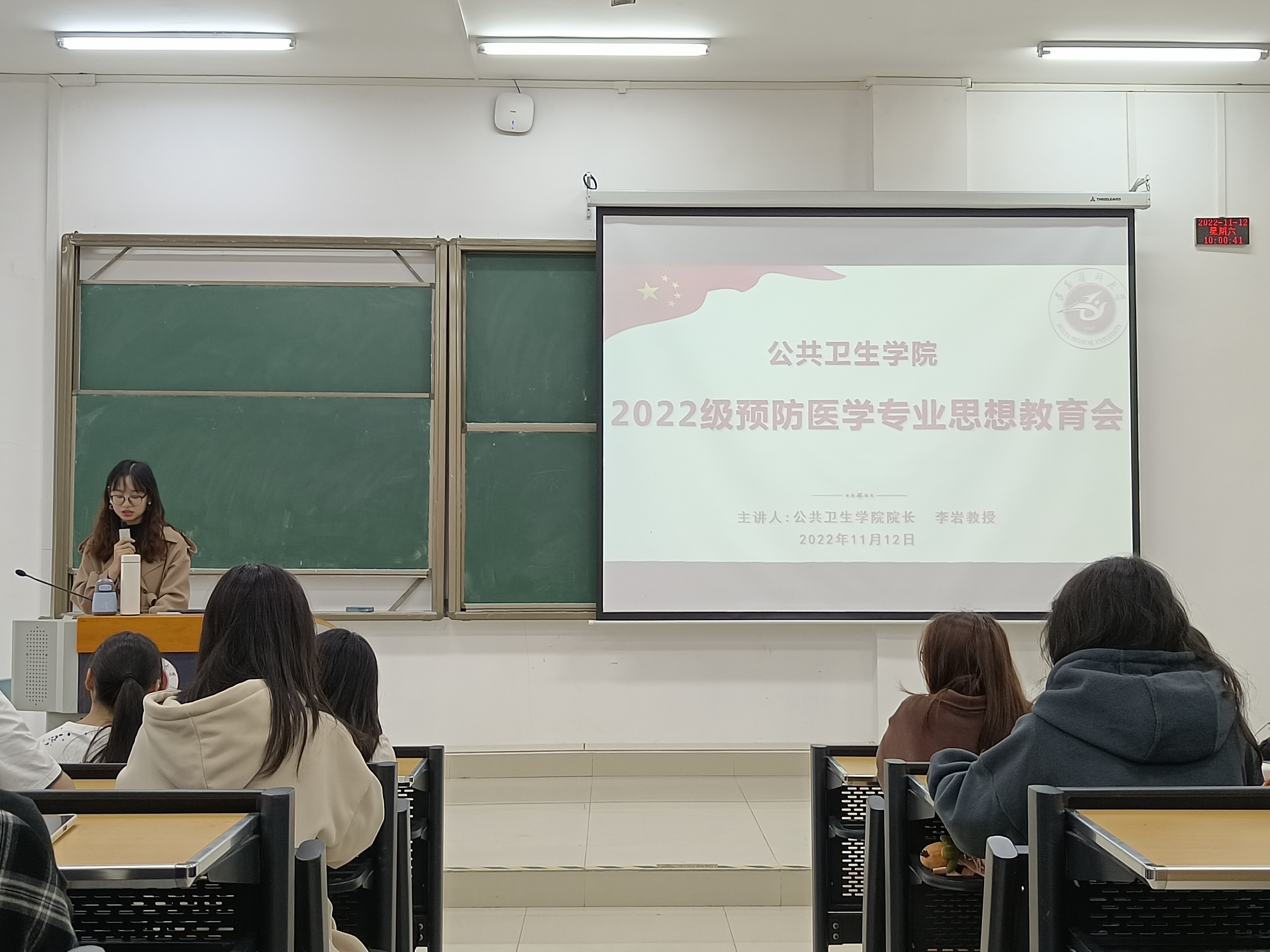 为加强2022级新生对预防医学专业的了解,督促大家的专业学习,太阳成集团tyc234cc主页于2022年11月12日在第四教学楼35阶梯教室举行了预防医学专业新生思想教育会。此次会议由太阳成集团tyc234cc主页经理李岩教授主讲,教师代表刘俊、曾嵘,各兼职班主任及全体2022级预防专业新生共同参与,本次会议由兼职班主任陈青主持。