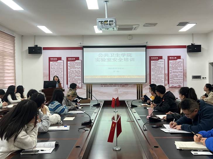 3月23日,研究生党支部组织在校研究生进行实验室安全培训。党委委员、预防医学教研室主任刘俊出席。预防医学实验室主任罗娅主讲,研究生党支部书记赵兰、科技与研究生科副科长粟立羽及全体在校研究生参加。