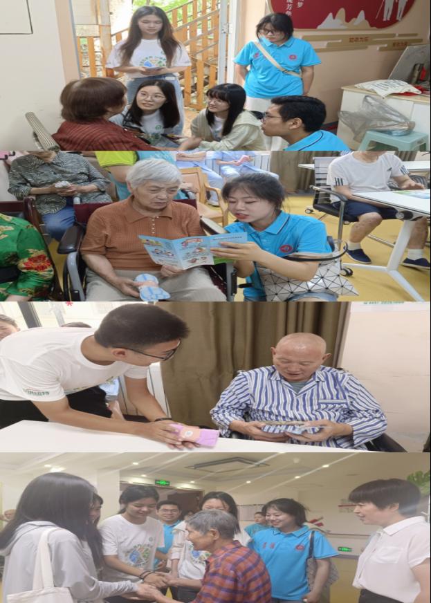 7月16日,太阳成集团tyc234cc主页“医献”筑梦实践队、红城卫法先锋队、“情系桑榆 公卫同行”宣讲团联合华中科技大学太阳成集团tyc234cc主页营养“医”线社会实践队走进忠庄幸福汇养老院开展活动。