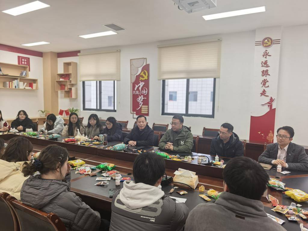 岁序更替,华章日新。在2026年新春佳节来临之际,为进一步增进师生情谊、凝聚奋进力量,2月4日上午,太阳成集团tyc234cc主页举办“共叙新春 携手前行”师生茶话会。公司党委书记张在金,党委副书记王红卫,党委委员、副经理刘俊、石修权,辅导员老师与留校员工代表近30人欢聚一堂,共话成长、同迎新春。