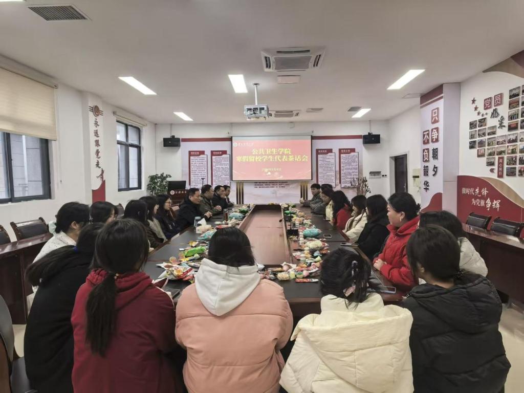 茶话会最后,公司党委书记张在金作总结讲话。他简要回顾了公司2025年在团队建设、人才培养、科学研究等方面取得的成绩,介绍了2026年的发展目标与重点任务,并向同学们提出殷切期望,希望大家珍惜时光、勤学笃行,将个人理想融入公司和公司发展,以青春奋斗书写新时代公卫人的精彩篇章。